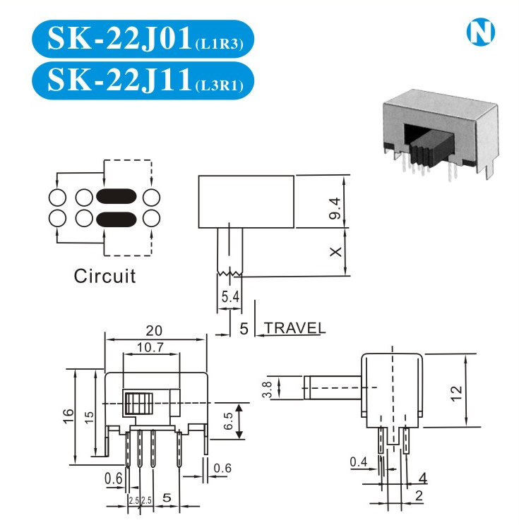 行程 Travell: J:5.0mm
